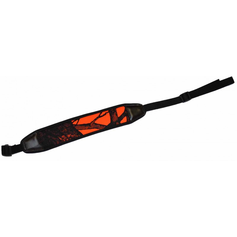 En tissus rembourré pour un confort optimal. Anti dérapant. Couleur camouflage orange. Réglable. Pour fusil ou carabine