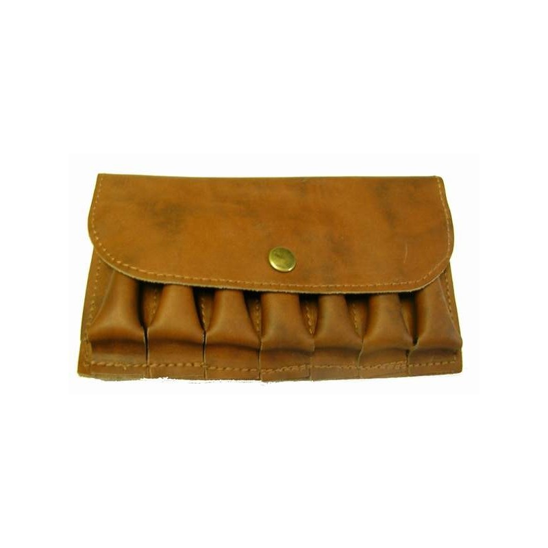 Pochette pour cartouches (cal 12/16/20). Cuir avec rabat. 7 tubes