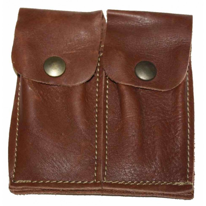 Pochette en cuir . Passant ceinture. 4 tubes balles carabine. A rabat.
