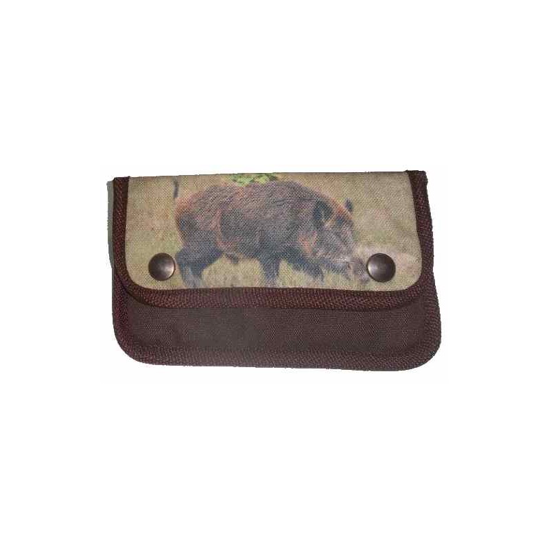 Pochette tissus avec motif sanglier pour carabine. 9 tubes. Passant ceinture