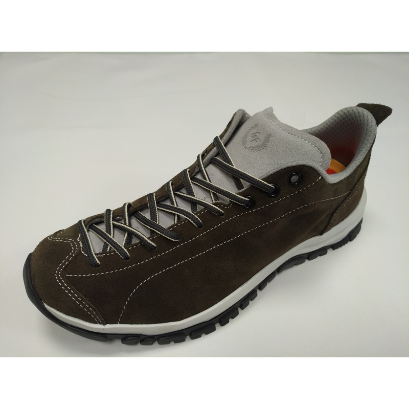 Chassure en daim avec doublure fine tissus respirante. Semelle adaptée à tous les terrains. Semelle amortissante à mémoire de forme. Poids plume: 330gr en 41. Idéale comme chaussures d'après chasse. Couleur Olive