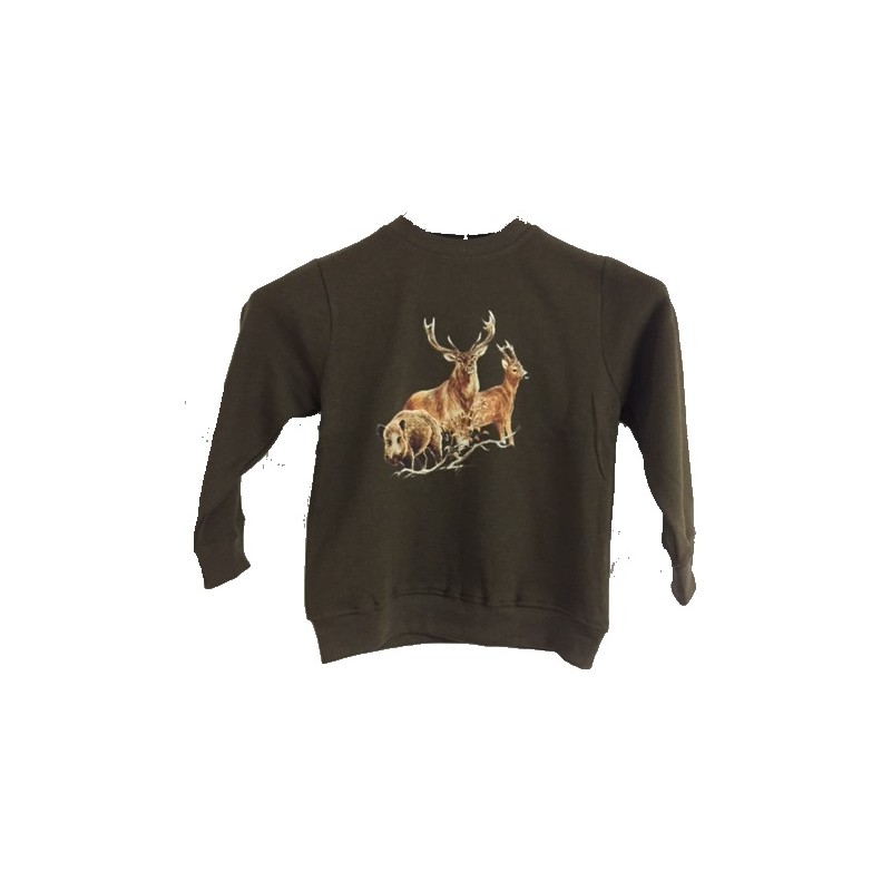 Sweat 70% polyester 30% coton. Manches longues. Motifs sanglier/cerf/chevreuil
