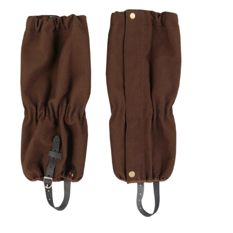Guêtres en cotton Canvas. Résistantes et silencieuses. Fermeture zip + pressions. Sangle de serrage sous le pied offrant une résistance optimale. Taille unique. Marrons