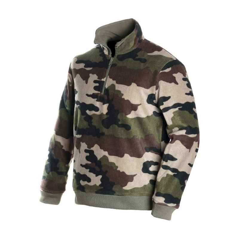 Sweat 2 en 1 réversible . Camo et Kaki. En microfibre. Col zip. Très chaud et agréable