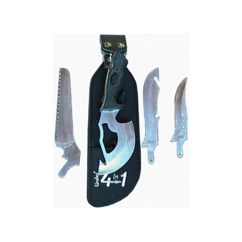 Kit grnad gibier. Garniture spéciale avec 4 lames échangeables en acier 420 inox. Manche en kraton. Etui en cordura. Livré avec dépeceur,scie, poignards.