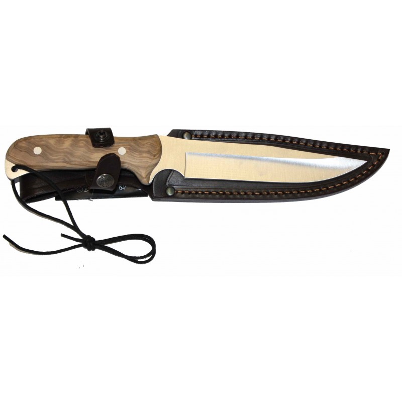 Poignard léger. manche olivier. livré dans étui ceinture en cuir. Lame 17cm Longueur 29cm