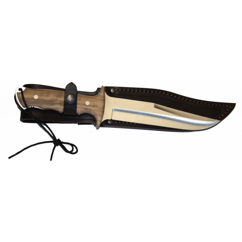 Poignard artisanal espagnol NIETTO. Lame d'une seule pièce. Manche Olivier. Etui cuir. Lame 19cm. Longueur totale 31cm. Très belle finition