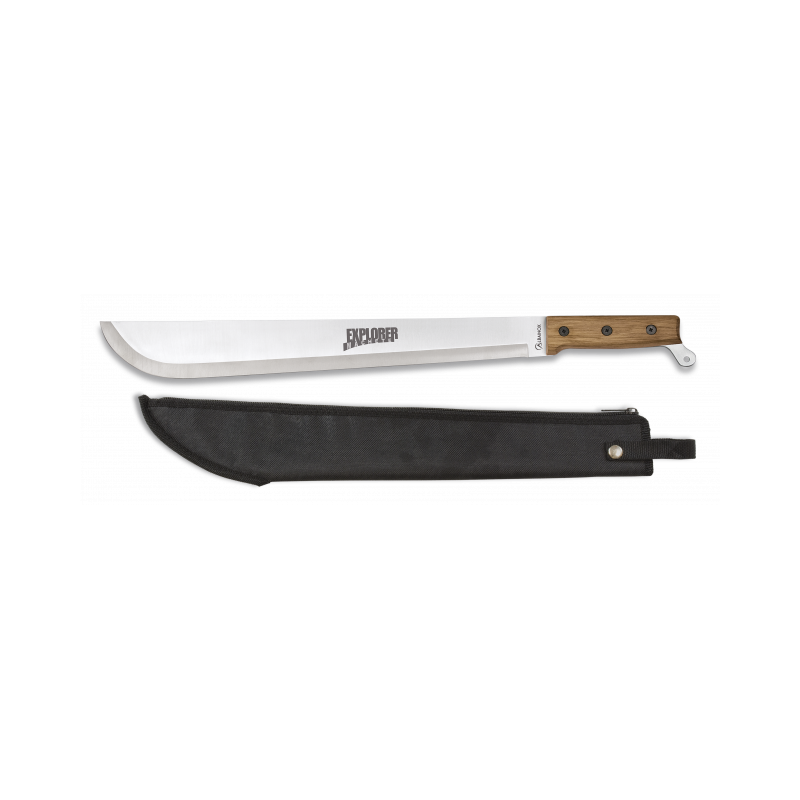 Machette résistante avec lame 43cm. Livrée avec fourreau. Manche bois.