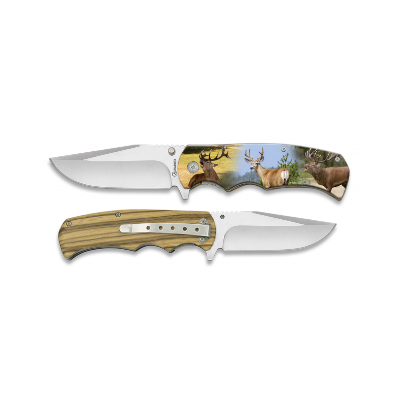 Couteau pliant cerfIMPRESSION PHOTOGRAPHIQUE 3DLame: Acier inoxLongueur lame: 8.8 cmBoîte coloréeClip