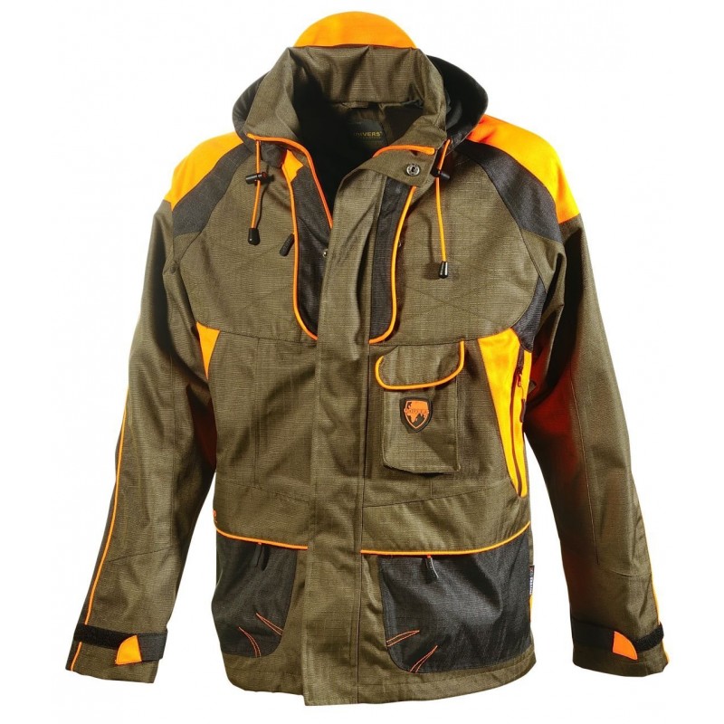 En Ripstop. Imperméable avec membrane et chaude. Carnier zippé. Capuche amovible. Nombreuses poches. Très résistante aux ronces. Idéale pour l'hiver. Très belle finition. Un haut de gamme!!!!